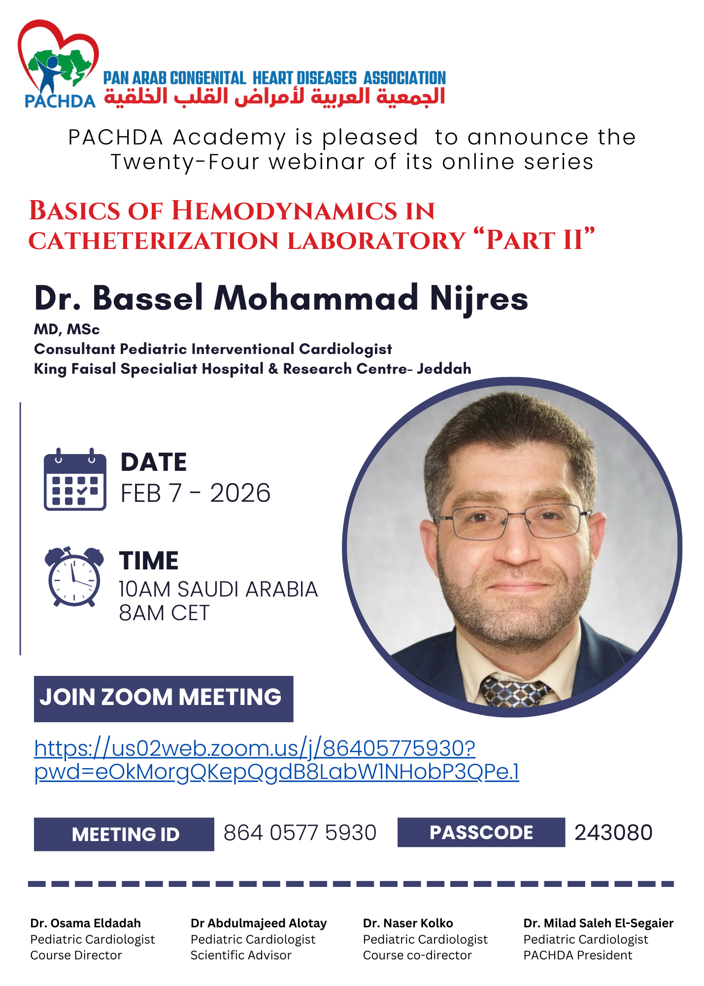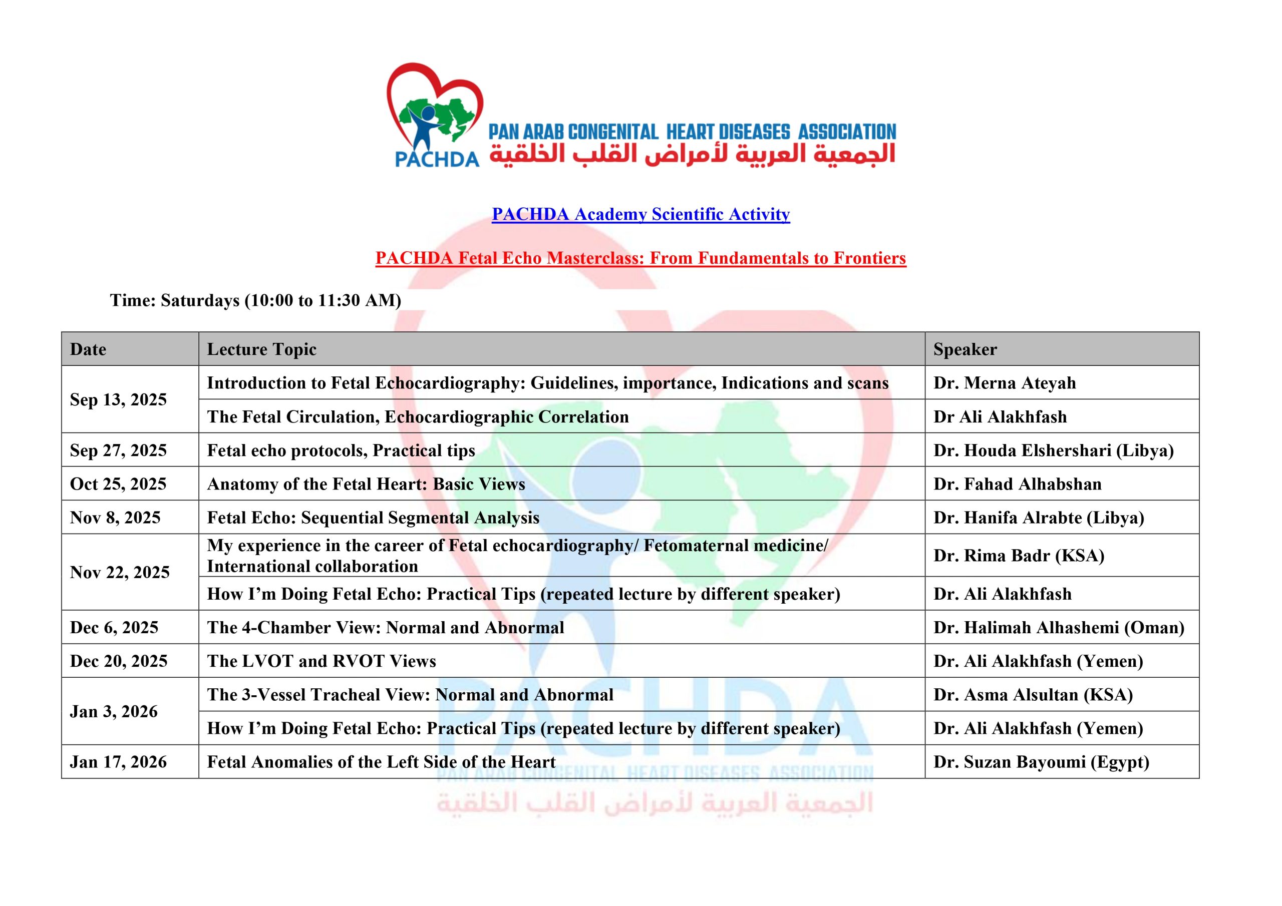 Our aim is to promoting the study of the congenital heart diseases (CHD) in all age groups (from infancy to adulthood) in the Arab world and beyond. Further, aiming to build a network between health care provider in the field of pediatric cardiology in the region and around the world.